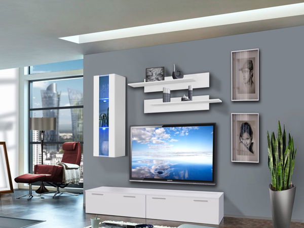 Jednoduchý a moderní design obývací stěny je doplněn o systém push-click, který je využit při vitríně. Obývací stěna je doplněna o LED podsvícení.