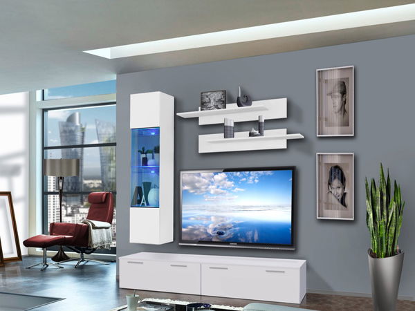 Jednoduchý a moderní design obývací stěny je doplněn o systém push-click, který je využit při vitríně. Obývací stěna je doplněna o LED podsvícení.