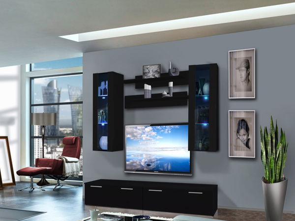 Jednoduchý a moderní design obývací stěny je doplněn o systém push-click, který je využit při vitríně. Obývací stěna je doplněna o LED podsvícení.