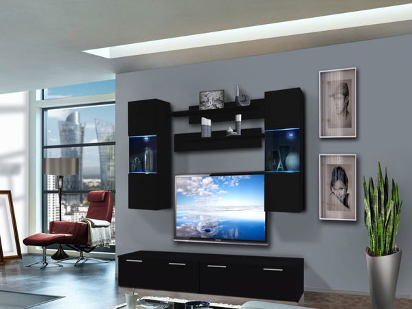 Jednoduchý a moderní design obývací stěny je doplněn o systém push-click, který je využit při vitríně. Obývací stěna je doplněna o LED podsvícení.