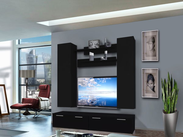 Jednoduchý a moderní design obývací stěny je doplněn o systém push-click, který je využit při skříně na stěnu.