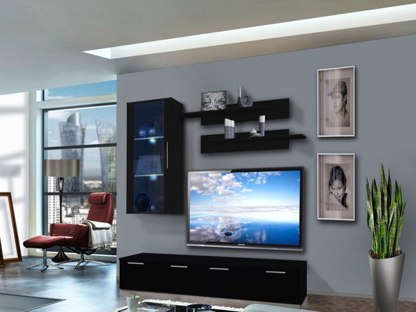 Jednoduchý a moderní design obývací stěny je doplněn o systém push-click, který je využit při vitríně. Obývací stěna je doplněna o LED podsvícení.