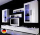 Moderní obývací stěna Leverkusen je vyrobena z těch nejkvalitnějších materiálů. Všechny komponenty tohoto nábytku jsou vyrobeny v Německu. Korpus je matné bílé barvy, přičemž dvířka jsou ve vysokém lesku. Prosklené části vitrín jsou z čirého skla a je možné si přiobjednat efektní RGB osvětlení, při kterém máte možnost vybrat si až z devíti různých barev podsvícení. Díky tomu si můžete podle nálady měnit atmosféru místnosti. Pokud by Vám nestačil nabízen úložný prostor, je možné si přiobjednat komodu a vitríny Leverkusen.