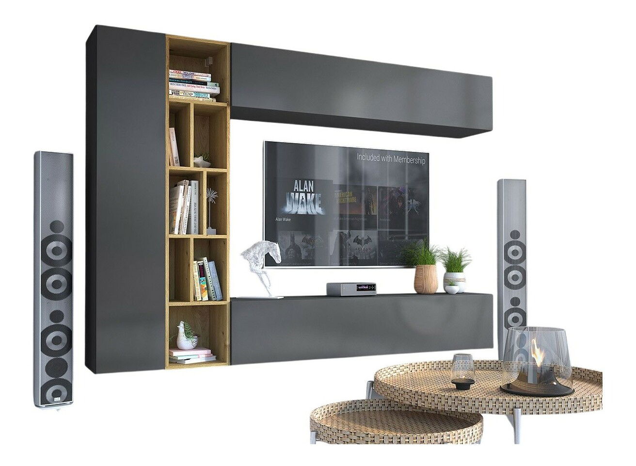 Obývací stěna Londria (šedá + šedá + dub artisan)