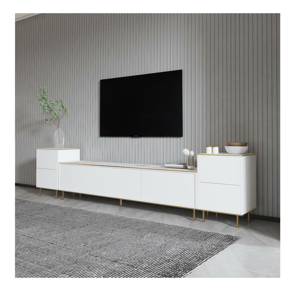 Obývací stěna Mameny 3 (mramor světlý + zlatá)