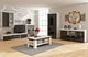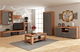 TV stolek 39 x 200 x 45 cm, skříňka 114 x 90 x 35 cm, police 30 x 110 x 22 cm, závěsná vitrína 111 x 90 x 35 cm (výška x šířka x hloubka).