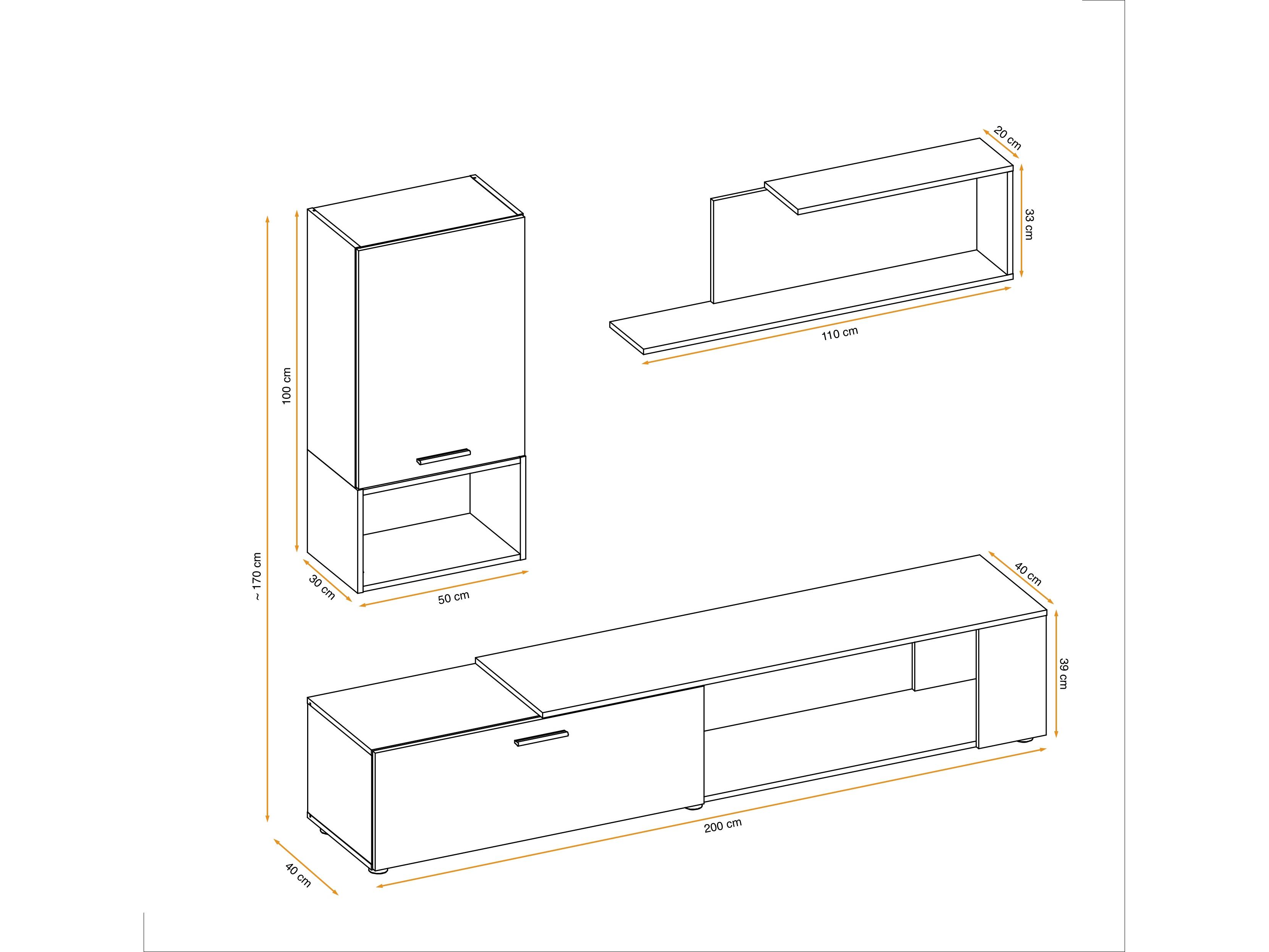 Obývací stěna Mantes WWT2 (bílá matná + dub wotan)