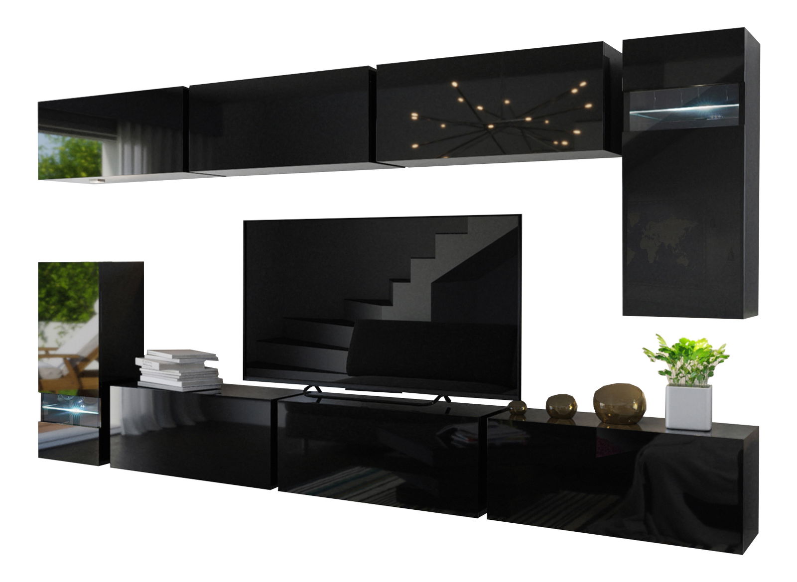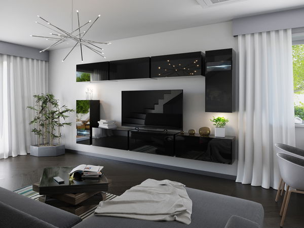 Chcete moderní interiér? Proto byste měli věnovat pozornost obývací stěně Maramara! Tento model nejen dobře vypadá v interiéru, ale také poskytuje ideální místo pro ukládání vašich věcí v domácnosti. Obývací stěna Maramara je vybavena inovativními řešeními, které výrazně zlepší pohodlí při používání. Všechna dvířka se otevírají důmyslným PUSH-CLICK systémem, kdy stačí jemně zatlačit pro otevření nebo opětovné zavření dvířek. Tato obývací stěna má možnost doplnění o LED osvětlení, které dodá celku zajímavý, velmi moderní charakter. Nábytek má dvě možnosti montáže: můžete ji umístit na stěnu, opticky zvětšit prostor, přidat její lehkost nebo ji umístit na podlahu pomocí nožiček.
