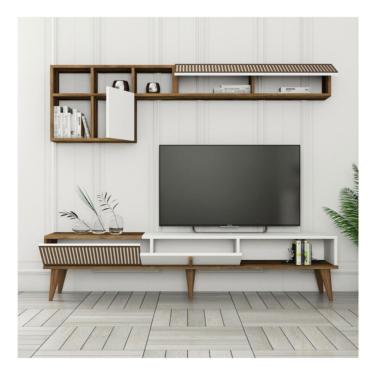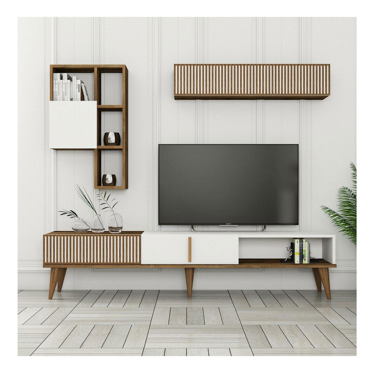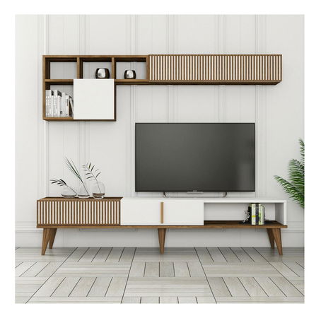 tloušťka: 18 mm, TV stojan: šířka: 180 cm, výška: 40 cm, hloubka: 35 cm, nástěnná police velikost: šířka: 180 cm, výška: 48,6 cm, hloubka: 20 cm, plastové nohy výška nohou: 20 cm
