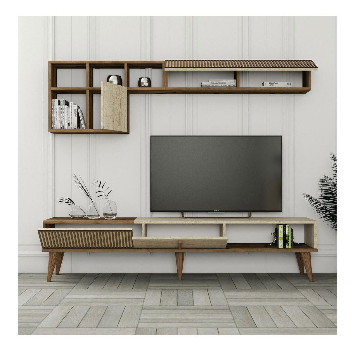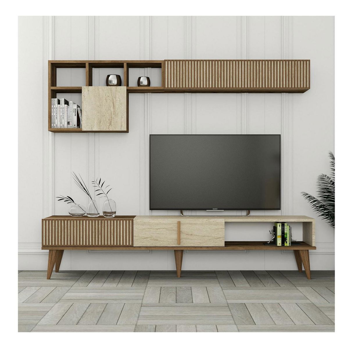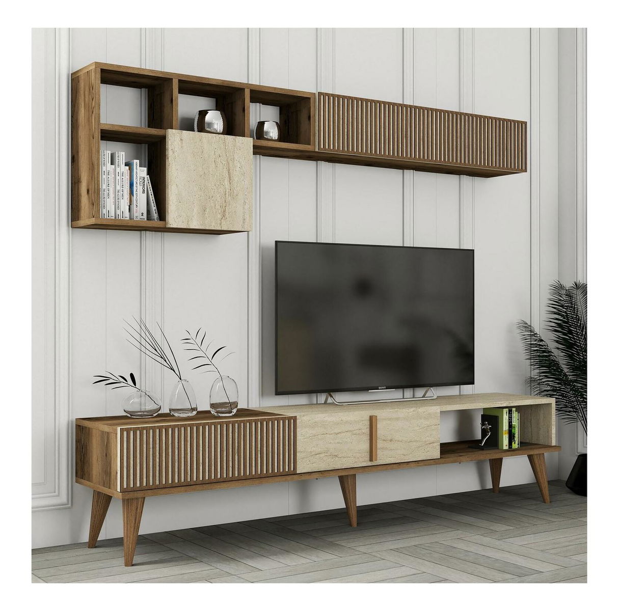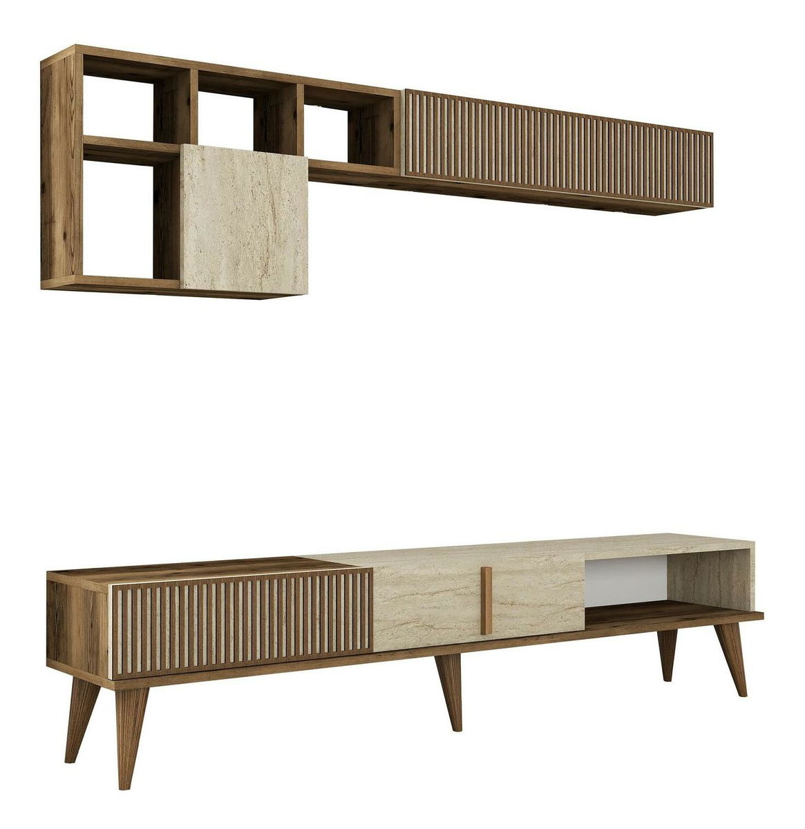 Obývací stěna Millano (ořech + travertin)