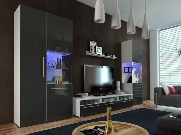 - Obývací stěna Nivel I (bílá + lesk černý) (s osvětlením)