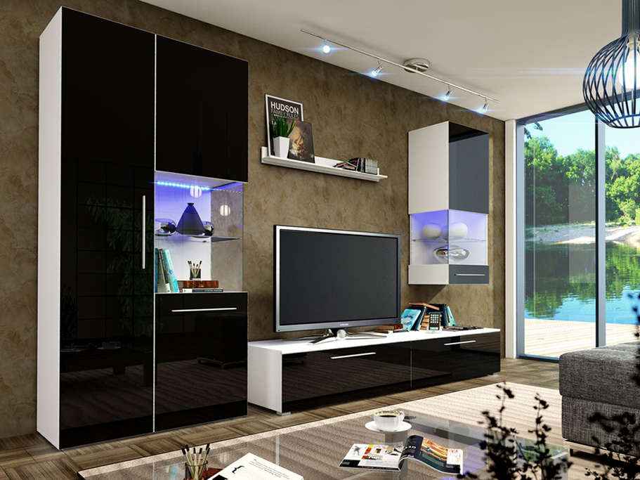 - Obývací stěna Nivel II (bílá + lesk černý) (s osvětlením)