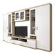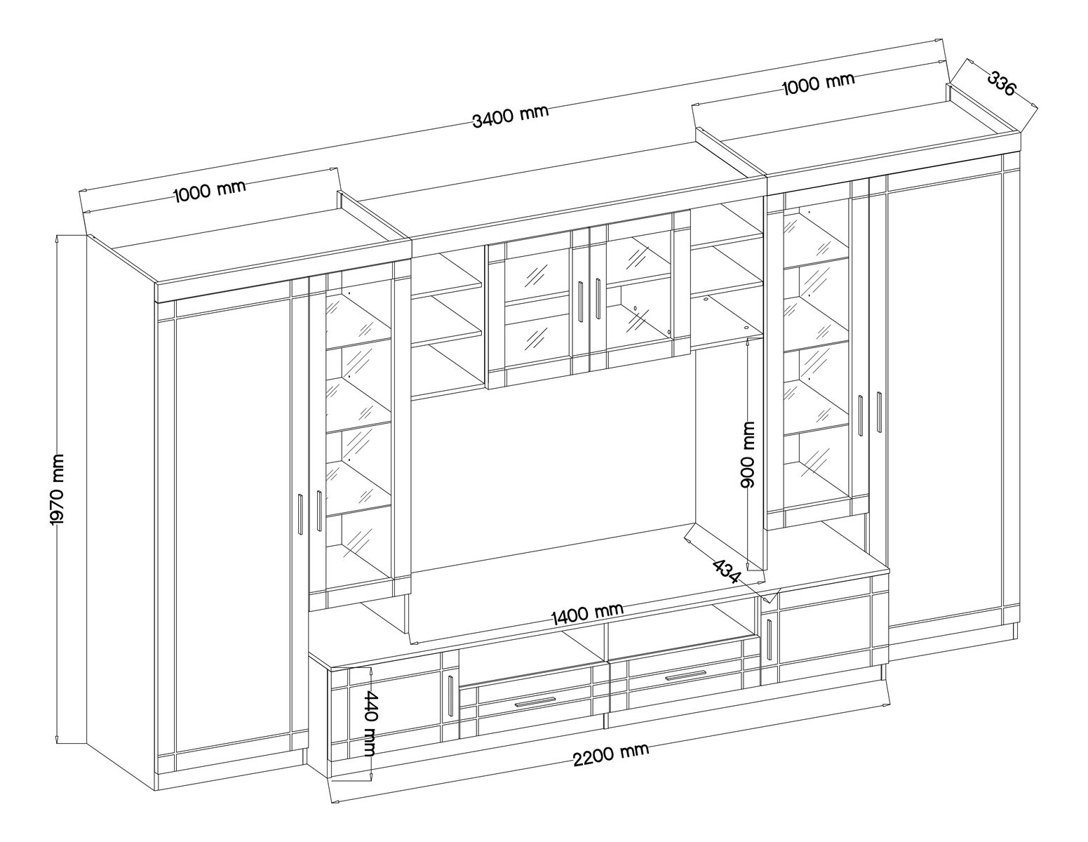 Moderní obývací stěna Porton nabízí komplexní a funkční řešení úložného prostoru v obývacím pokoji. Skládá se z prostorných skříní s prosklenými dvířky, které poslouží jako vitríny pro vystavení dekorací, knih a jiných doplňků. Součástí obývací stěny je také praktický TV stolek se skříňkami, zásuvkami a otevřenými prostory na Vaše AV zařízení. Obývací stěna je vyrobena z kvalitní MDF desky a laminované dřevotřísky.