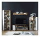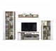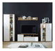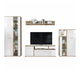 Sestava obsahuje polici, vitrínu, vysokou vitrínu, TV stolek