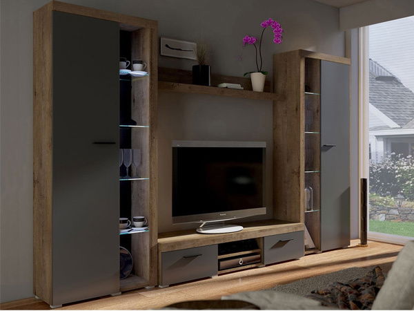 Obývací stěna Rodos XL (dub lefkas + grafit) *výprodej