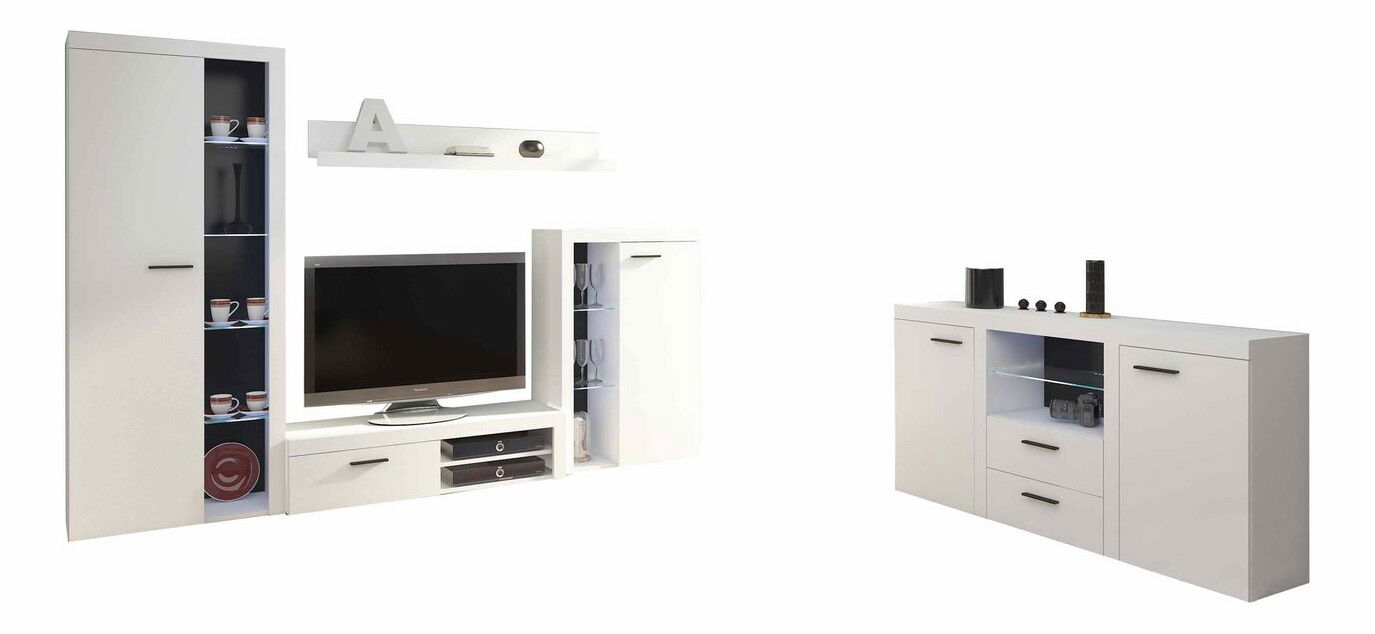 Obývací stěna Rokara (s komodou) (bílá) (bez osvětlení)