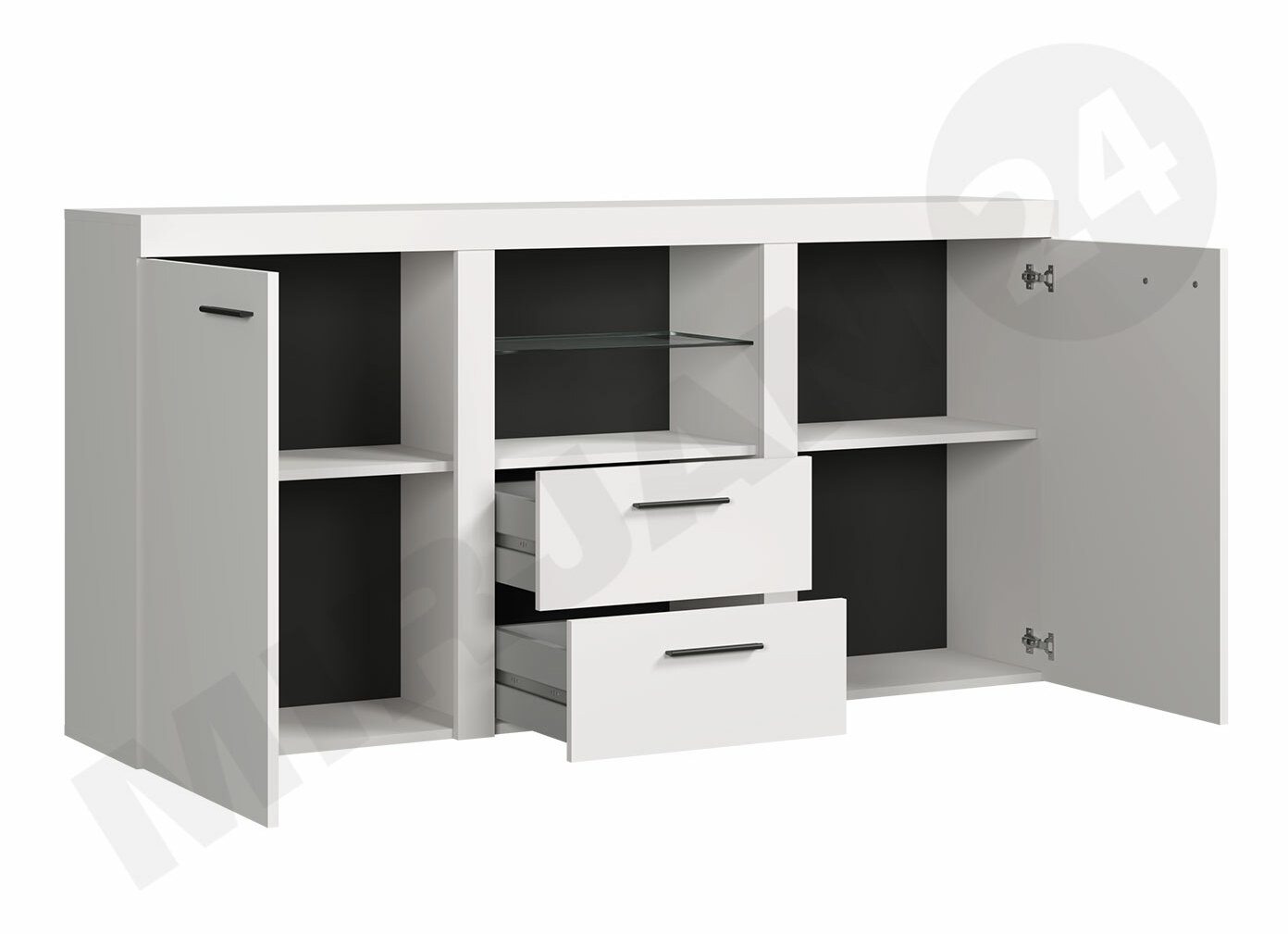 Komoda: výška: 81 cm, šířka: 157 cm, hloubka: 40 cm.