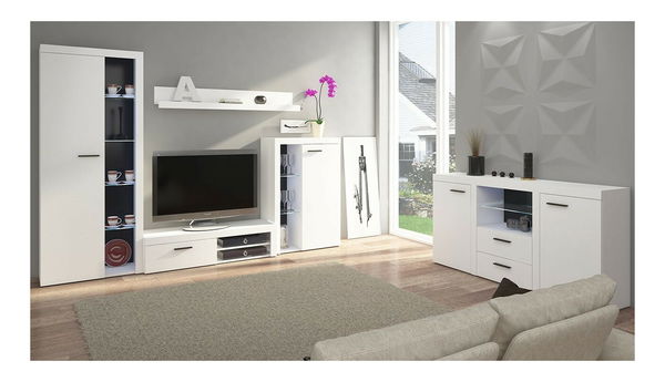 Obývací stěna Rokara (s komodou) (bílá) (osvětlení LED)