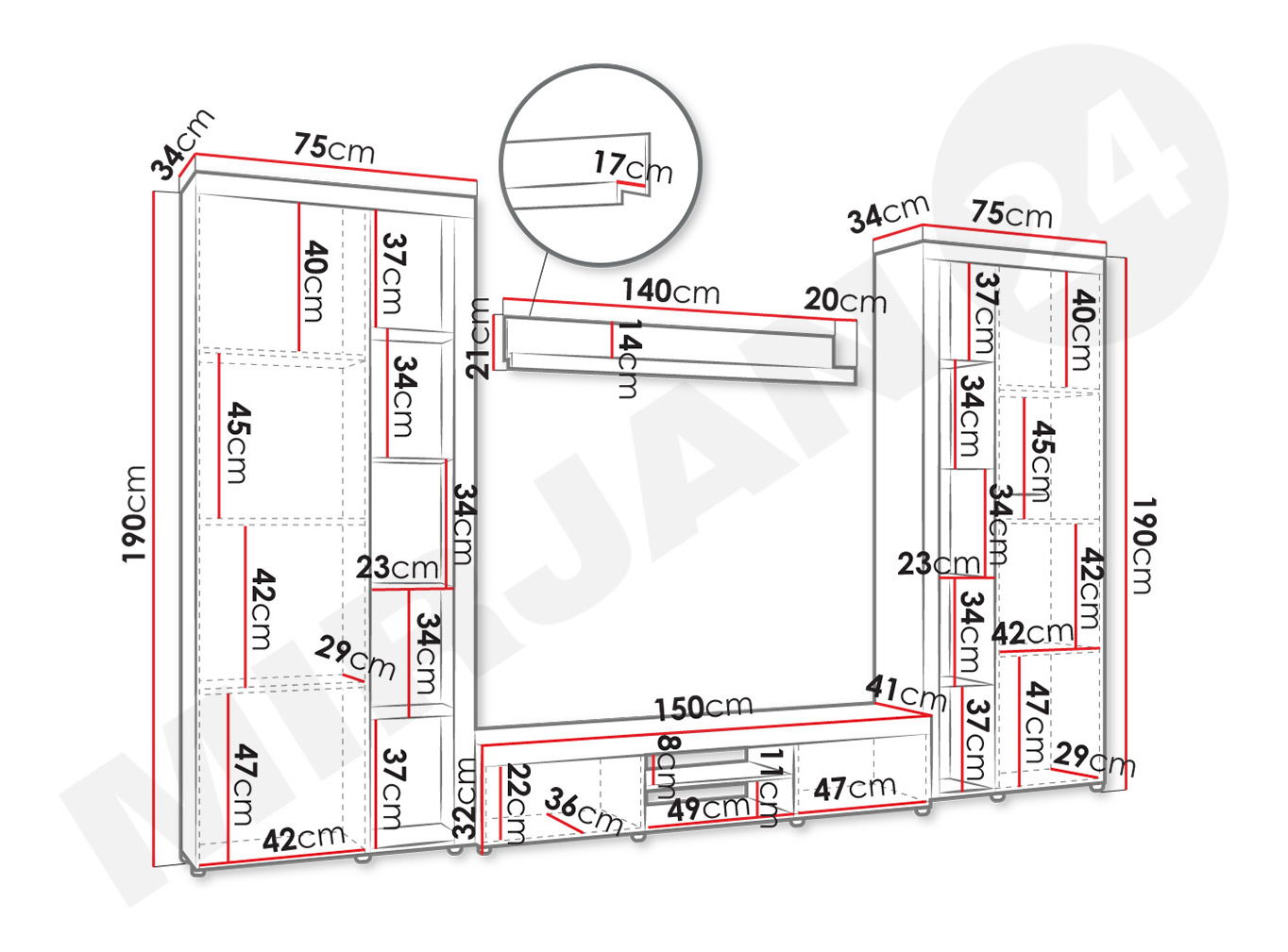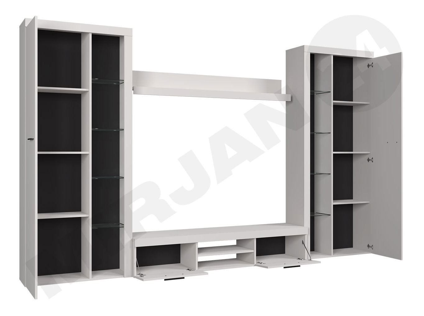 ZobrazitExtrémně funkční sada nábytku sestává především z vysoké skříňky. Díky systému dělených polic získáte praktický úložný prostor. Závěrečná část je prostorná police na doplňky, zatímco vitrína je zdobená skleněnými policemi na dekorace a rodinnými suvenýry. V další možnosti si můžete pořídit LED osvětlení, které dodá vašemu interiéru atmosférickou záři. Televizní skříňka zabudovaná do nástěnné jednotky do obývacího pokoje je kombinací prolamovaných polic (pro dekodér a reproduktor) s otočnými policemi na příslušenství. Stěnovou jednotku doplňuje stabilní police, kterou můžete zavěsit na televizor. Jeho délka je přizpůsobena televiznímu stolu. Díky módním barevným kombinacím nástěnných jednotek bude možné úspěšně zapadnout do skandinávských, průmyslových a minimalistických interiérů.