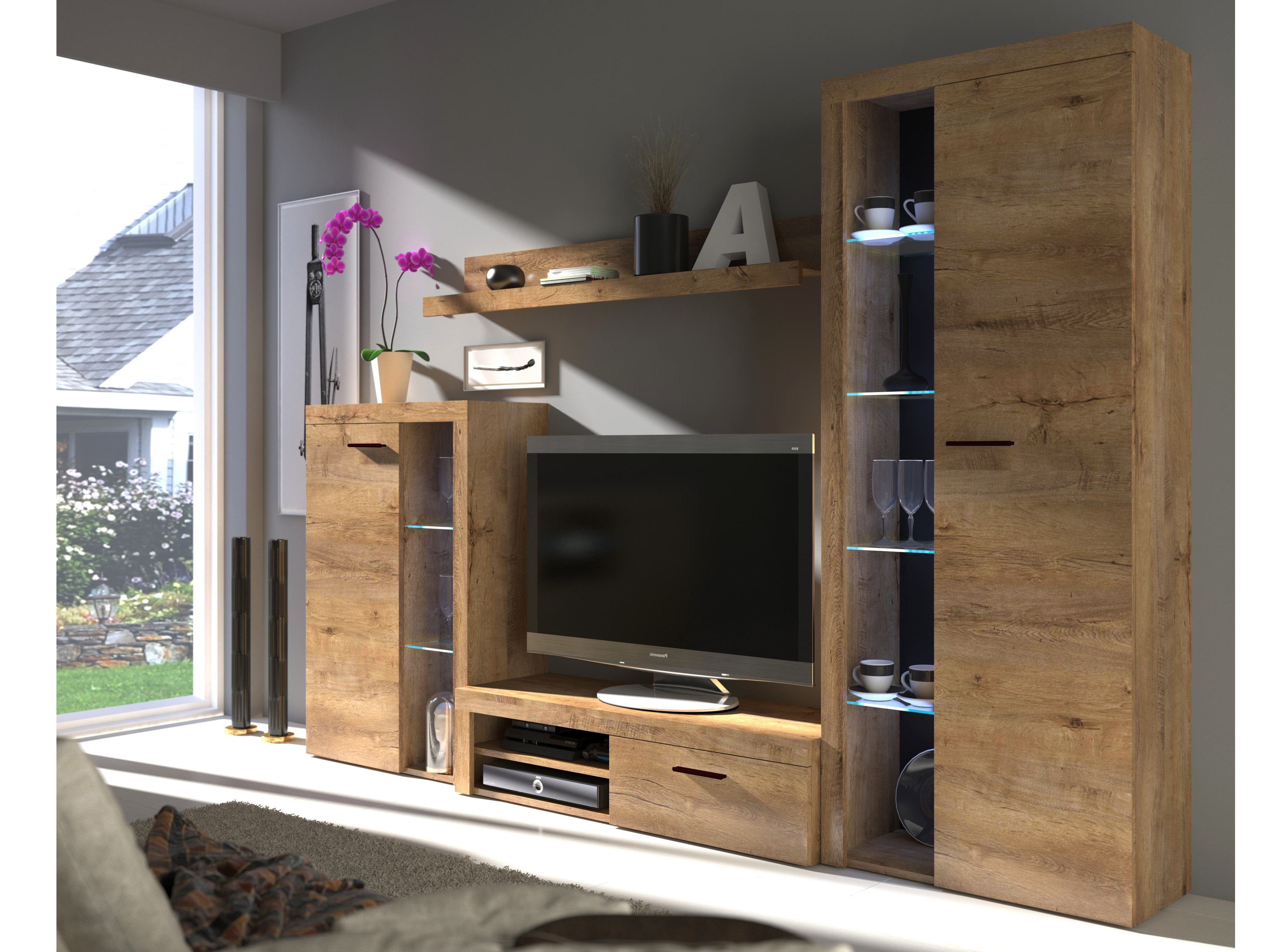 Obývací stěna Rudby (dub lefkas) (bez osvětlení)