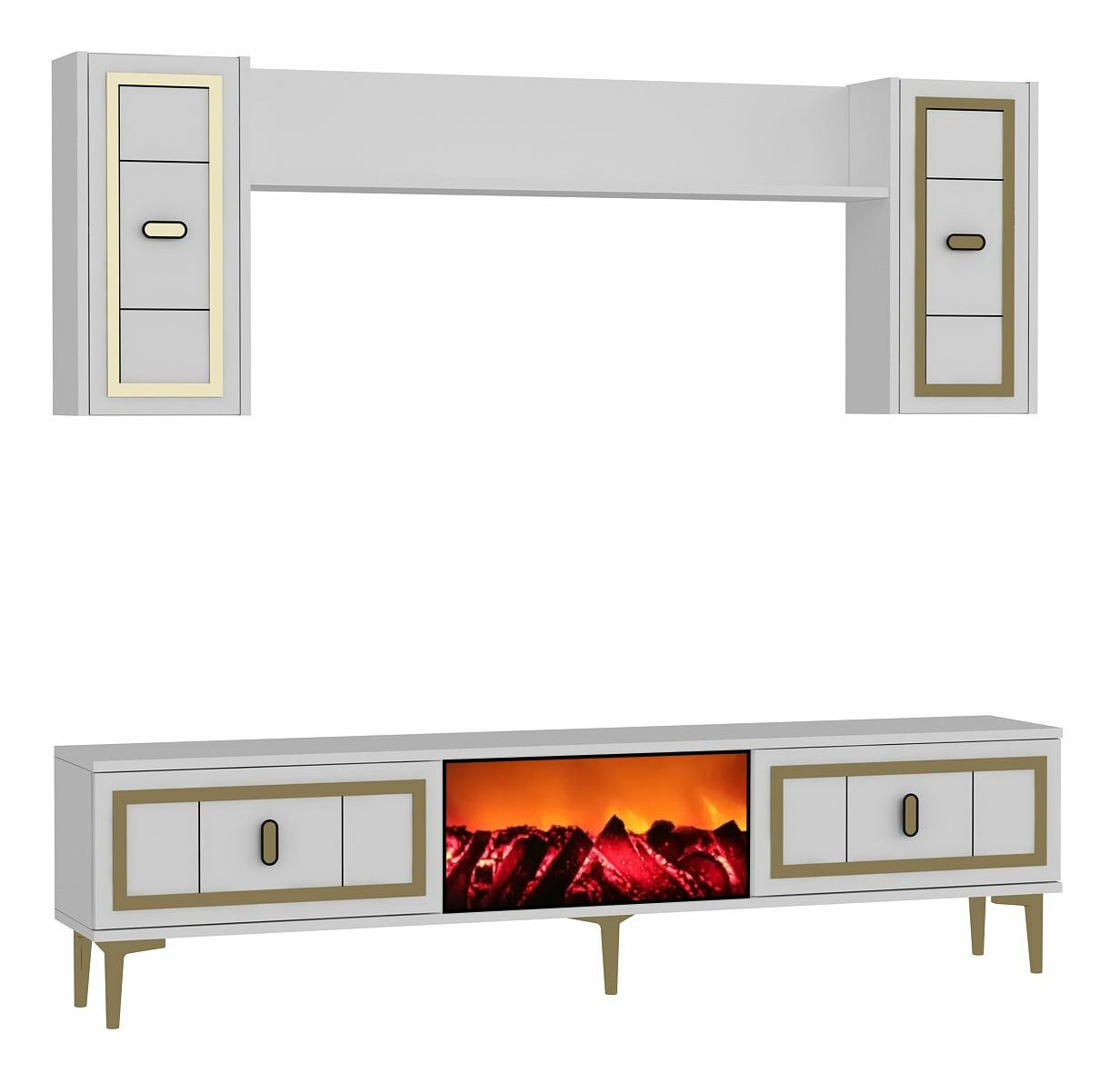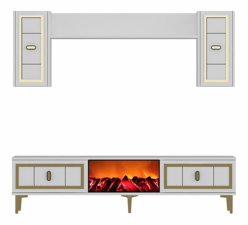 Obývací stěna s krbem Orino (šedá + černá)
