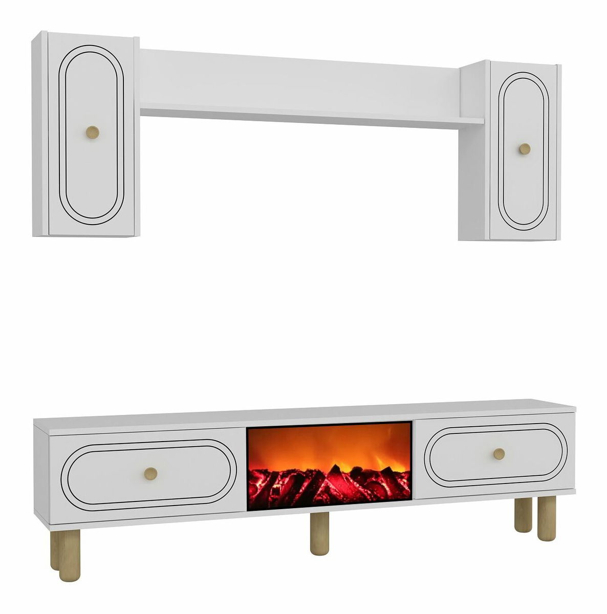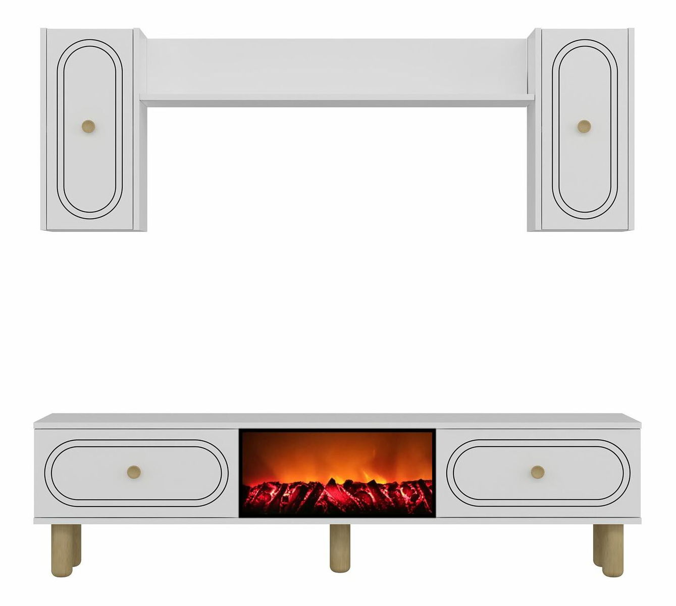 - Obývací stěna s krbem Polena (antracit + zlatá)
