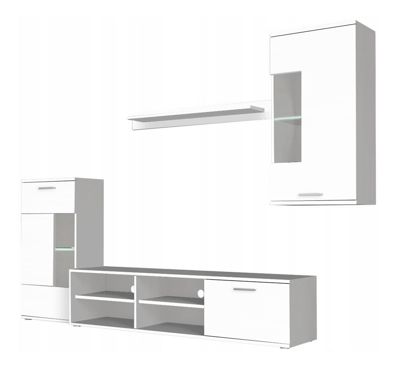 Obklopte se nábytkem, který vytvoří z vašeho obývacího pokoje pohodové a útulné místo, a zároveň jej rozzáří, poskytne dostatek prostoru na věci, které byste měli rádi neustále na očích či uschované. Obývací stěna Frantal 1 NEW splní vaše sny o klidných chvilkách s rodinou nebo přáteli a upoutá pohledy každé návštěvy. Disponuje LED osvětlením s podbarvením studená bílá, které celé místnosti dodá noblesu a eleganci. Frantal 1 NEW je vyrobena z kvalitní DTD foliované v elegantním bílém provedení. Obývací sestava se skládá z RTV stolku, který poskytuje otevřený úložný prostor a skříňku, kde se dvířka otevírají vyklápěním. Závěsná vitrína a stojící vitrína poskytují dva úložné prostory rozdělené poličkou, a vynikají skleněnou částí oživenou LED podsvícením. Polička nabízí prostor pro knihy, CD nebo moderní doplňky.