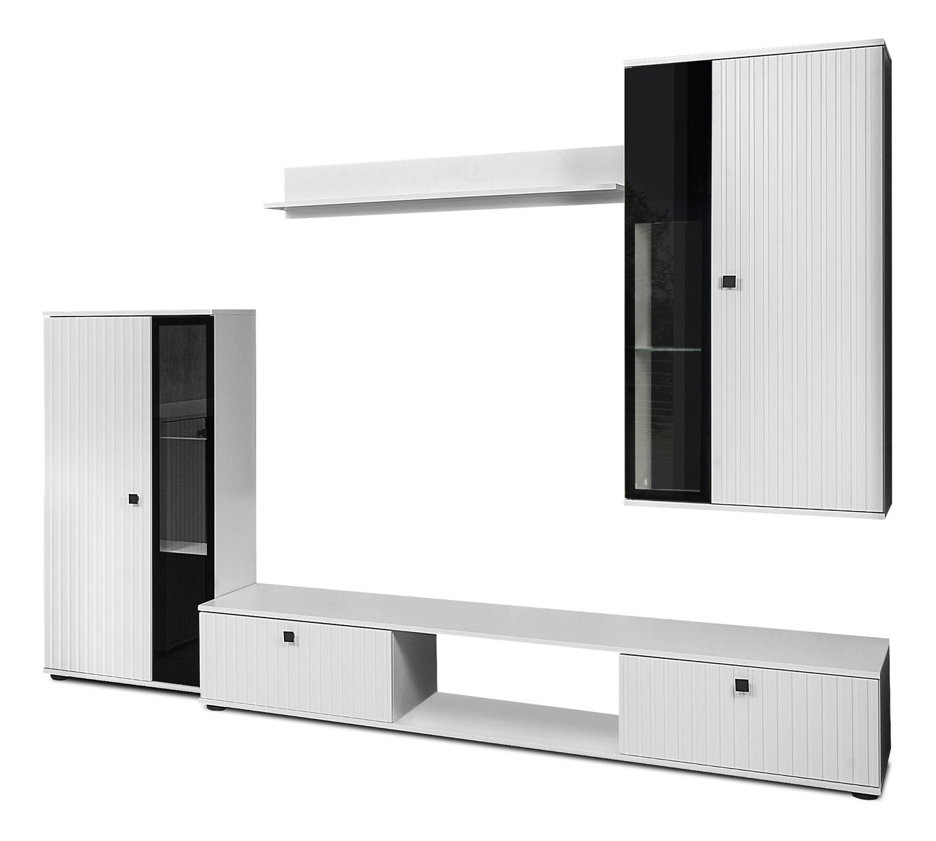 Obývací stěna Saul (bílá + bílá) (bez osvětlení)
