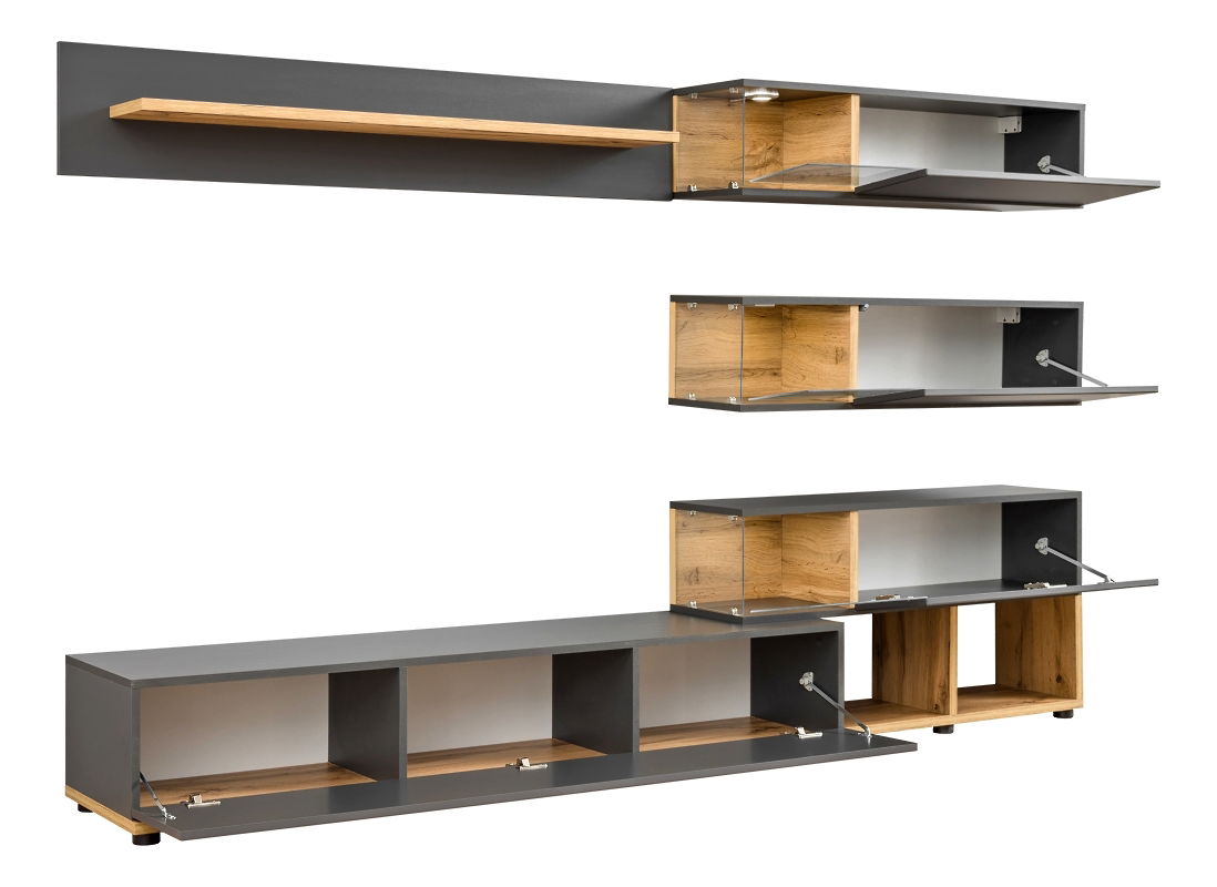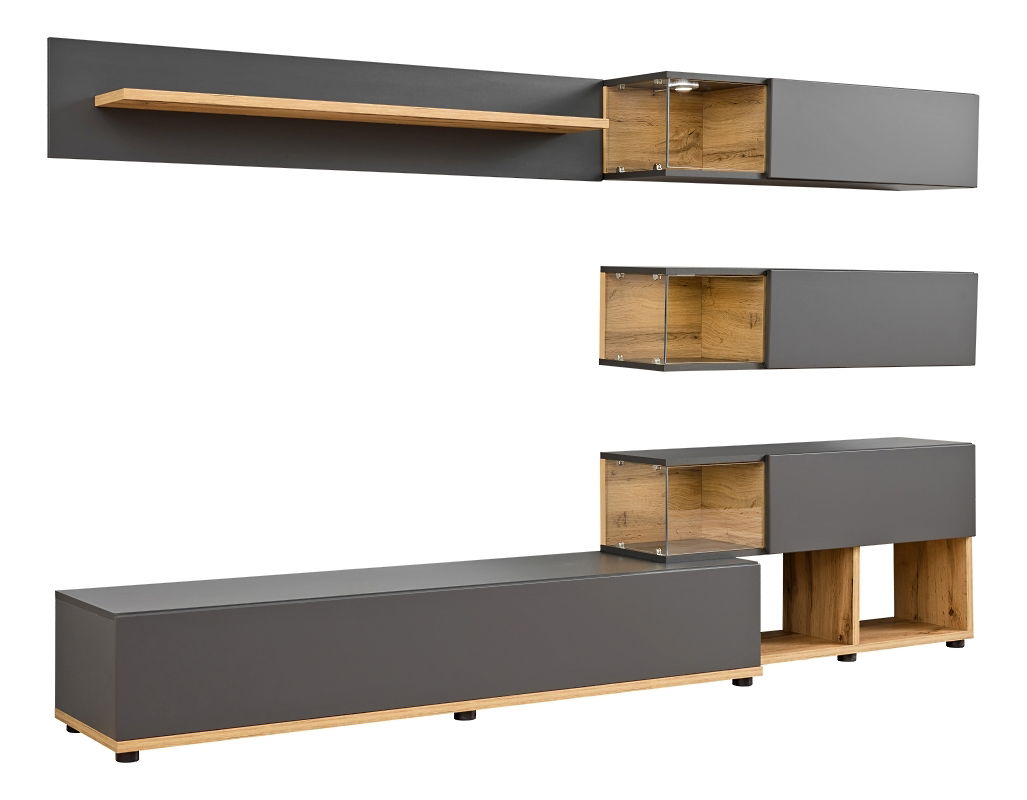 Obývací stěna Seghill 28 ANWT SK (antracit + dub wotan) (s LED osvětlením)