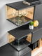 RTV: 160/29/40cm, Spodní skříňka: 80/29/30 cm, 3x závěsná vitrína: 100/25/30 cm, Police: 160/25/20 cm