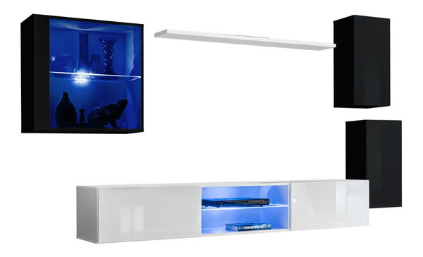 Obývací stěna Shelly 26 ZW WS 23 (černá matná + černá lesklá + bílá matná + bílá lesklá)