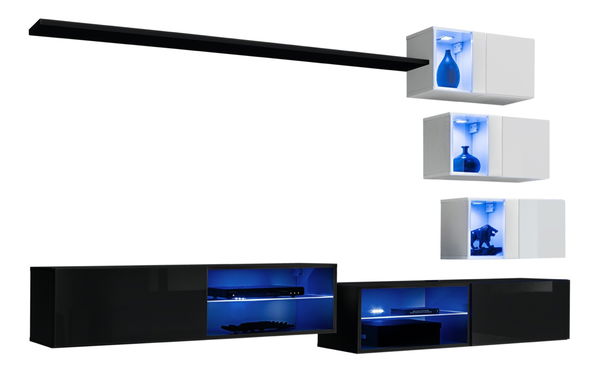Obývací stěna Shelly 26 ZW WS 24 (černá matná + černá lesklá + bílá matná + bílá lesklá)