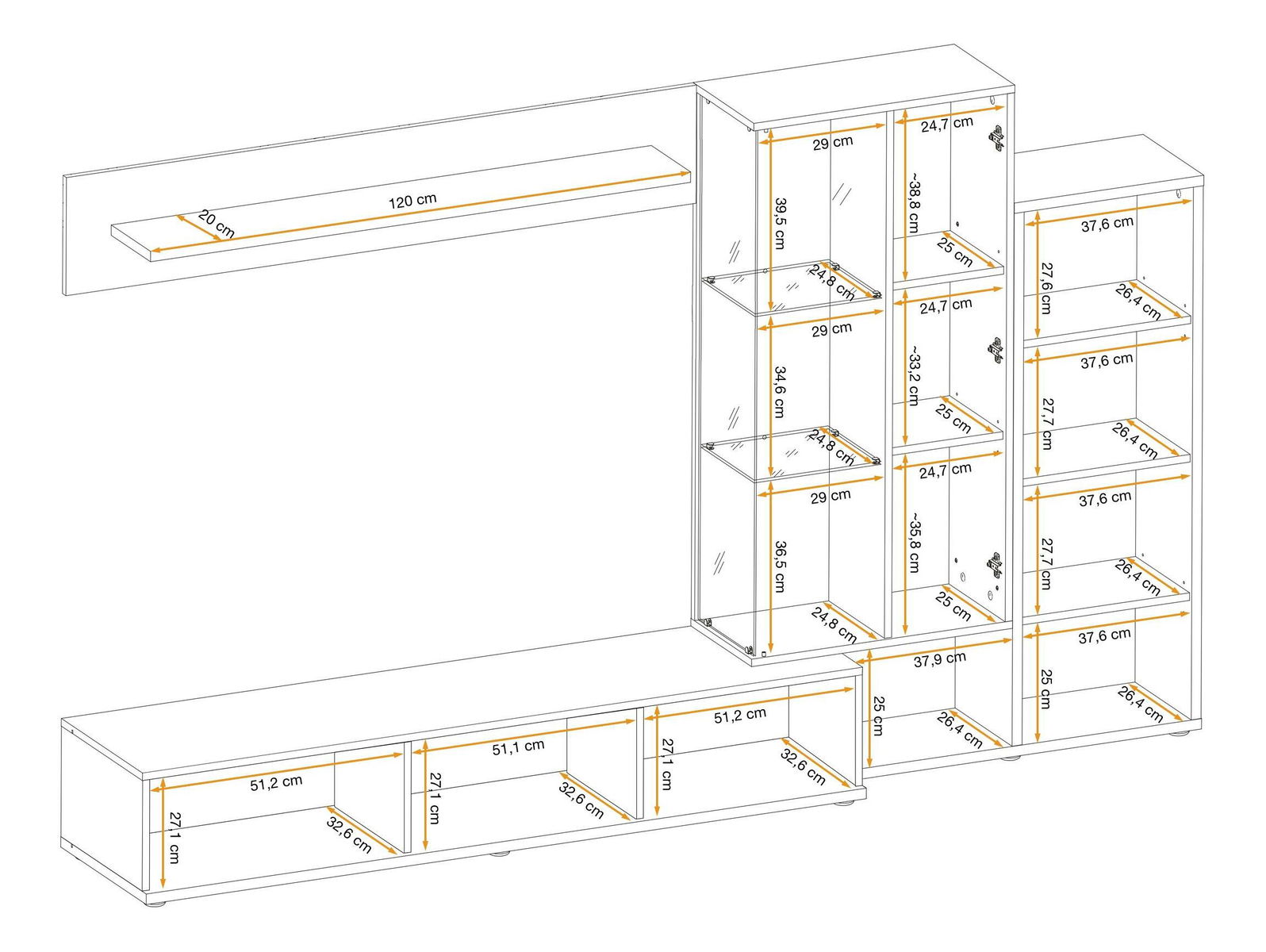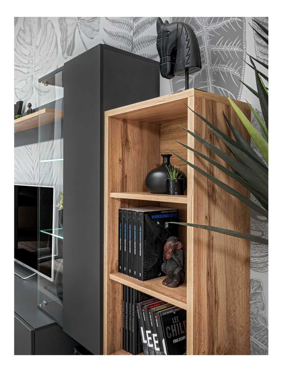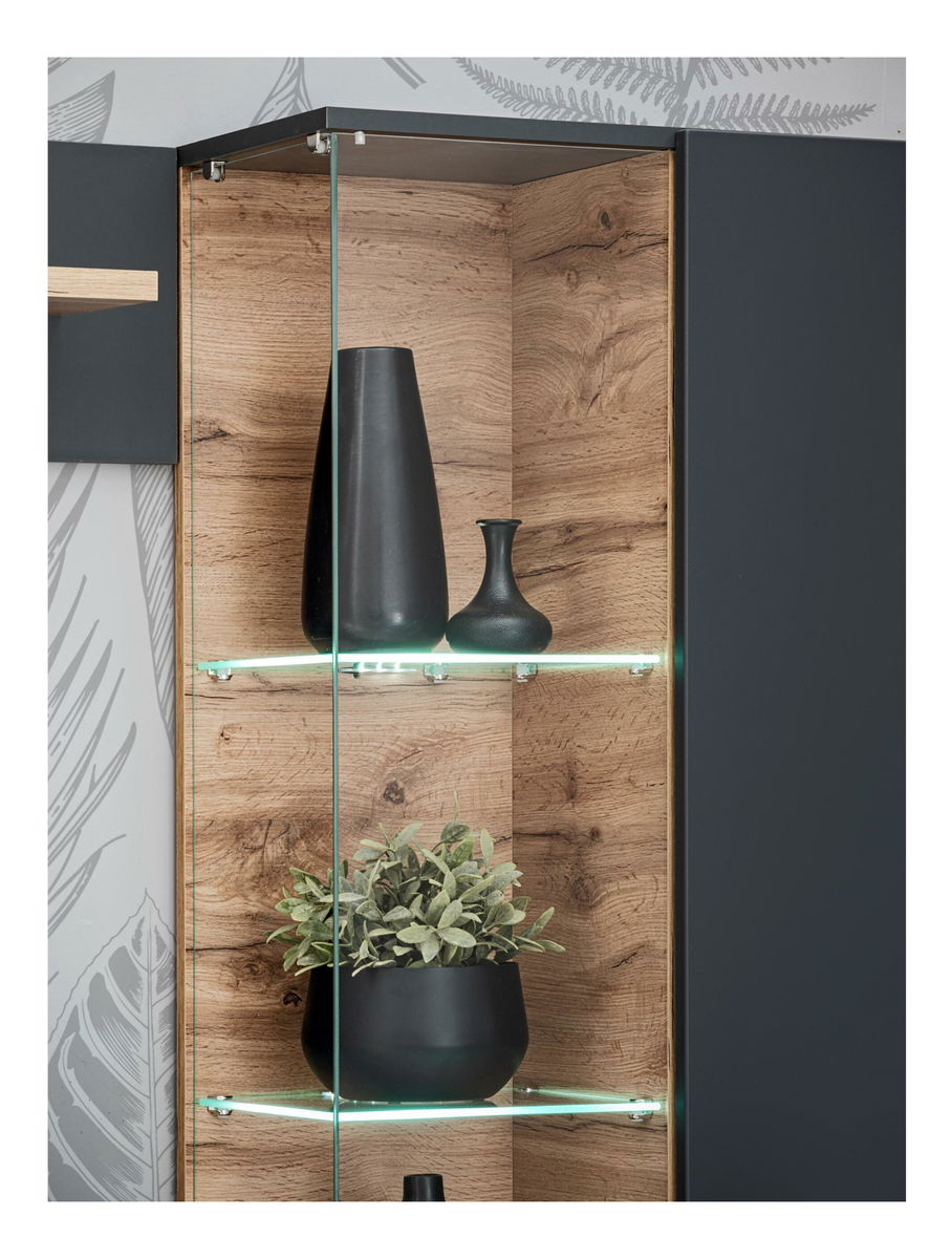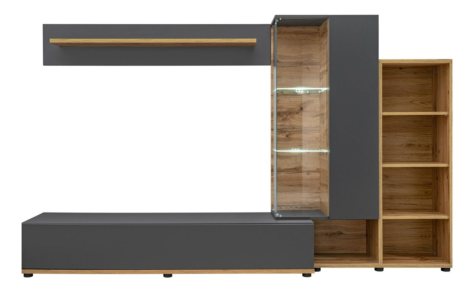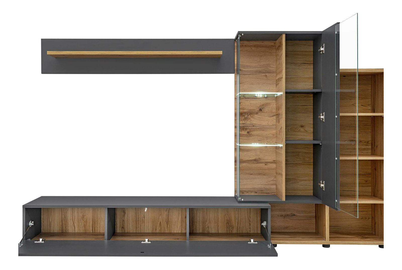 Obývací stěna Siluett (antracit + dub wotan) (s LED osvětlením)