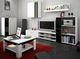 Moderní obývací stěna Sky v barvě švestka v kombinaci s černým leskem.