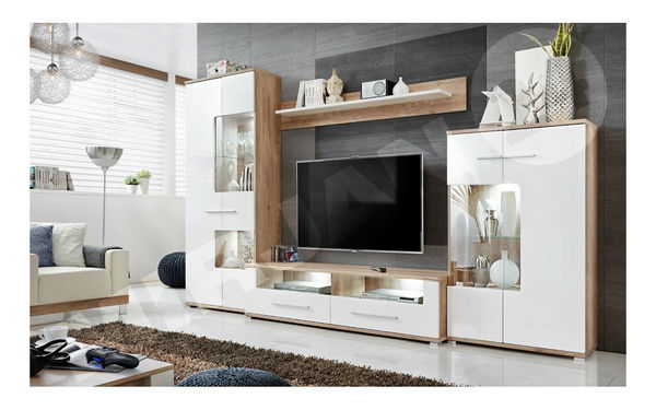 Obývací stěna Solange III (dub monument + bílý lesk)