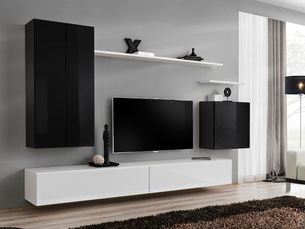 Obývací stěna Stanwick 26 ZW SW 2 nabízí moderní a elegantní design pro váš obývací prostor. Systém push-click umožňuje snadné a univerzální otevírání dveří z levé nebo pravé strany. ABS hrany zajišťují, že nábytek bude chráněn před mechanickým poškozením a bude vypadat nový i po delším používání. Stěna obsahuje velkou skříňku na stěnu, TV stolek/skříňku, dlouhou a krátkou poličku a malou skříňku na stěnu. Rozměry jednotlivých částí stěny naleznete v popisu. Stěna se dodává v 7 balících, o celkové hmotnosti 85 kg.