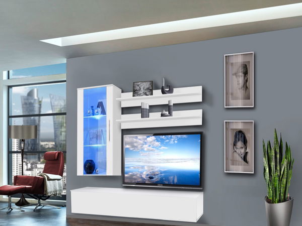 Jednoduchý a moderní design obývací stěny je doplněn o systém push-click, který je využit při vitríně. Obývací stěna je doplněna o LED podsvícení.