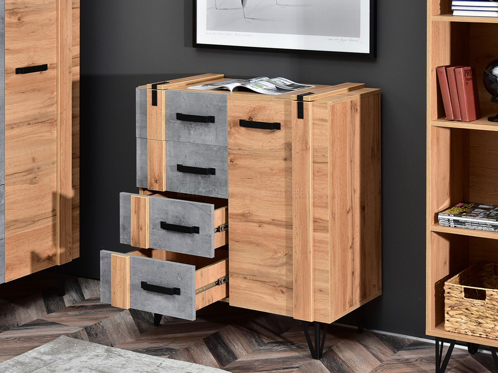 Obývací stěna Subrayado 01 (dub + černá)
