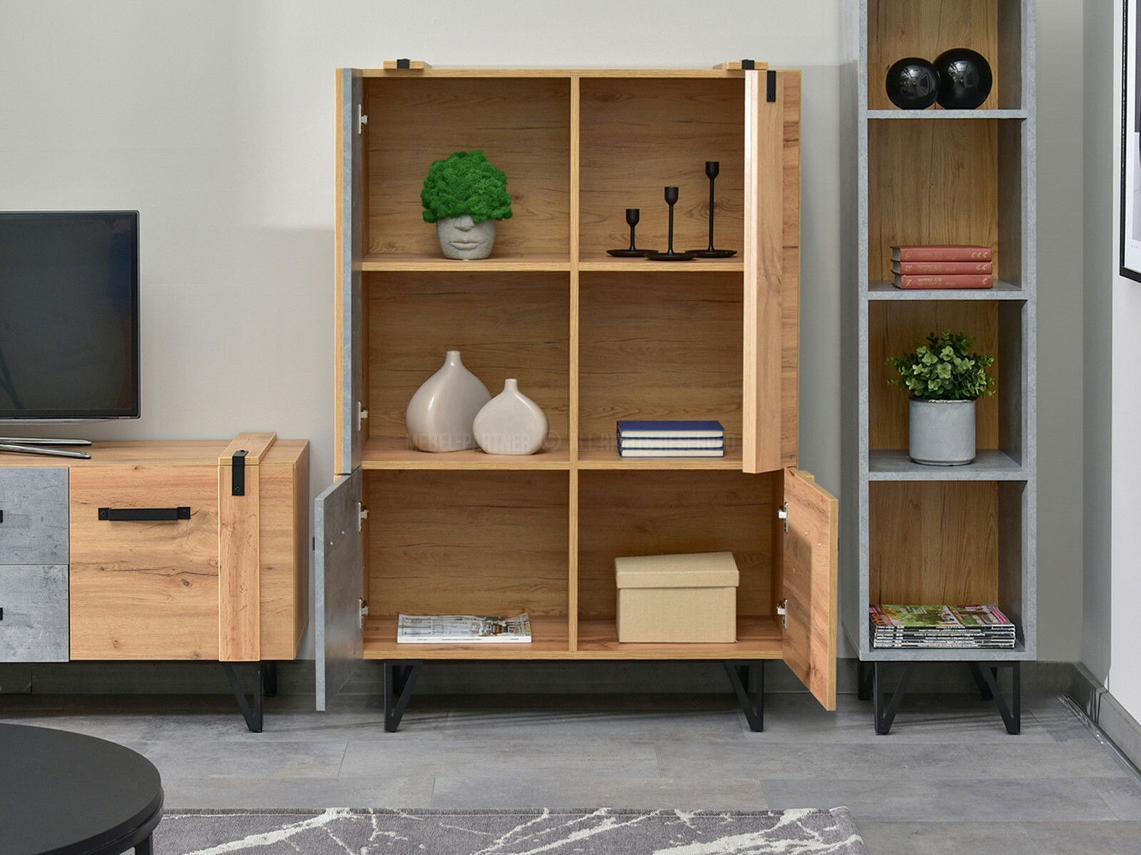 Obývací stěna Suspendera SH04 (dub + černá)