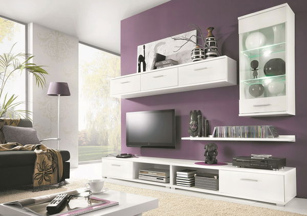 Obývací stěna Tahiti nabízí množství úložného prostoru při menších rozměrech. Je designovaná tak, aby se vyjímala v prostoru a udělala z Vašeho obývacího pokoje moderní prostor. Bílá barva sestavy je doplněna o dvířka TV stolku v bílém lesku. K obývací stěně je možné si přiobjednat i praktickou vitrínu a osvětlení prosklených částí.