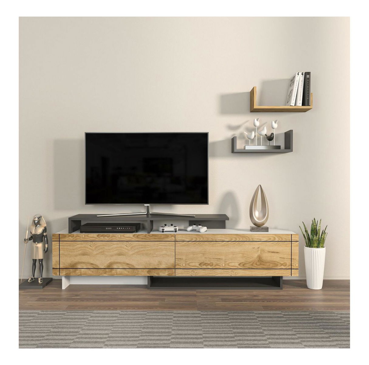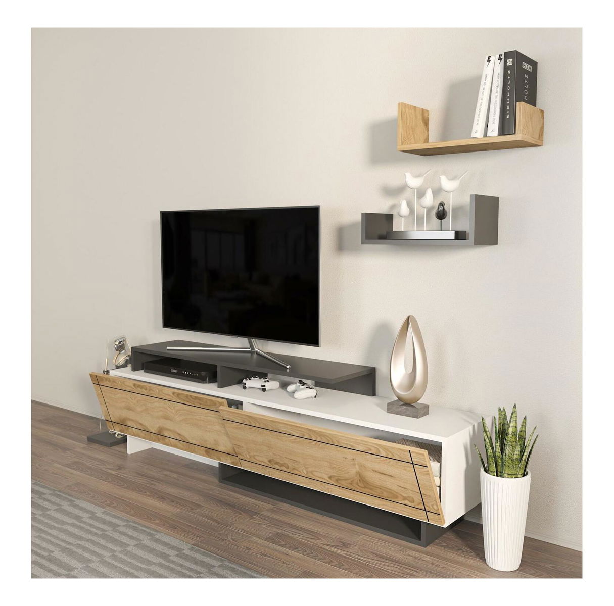 Obývací stěna Tammeko (bílá + dub + antracit)