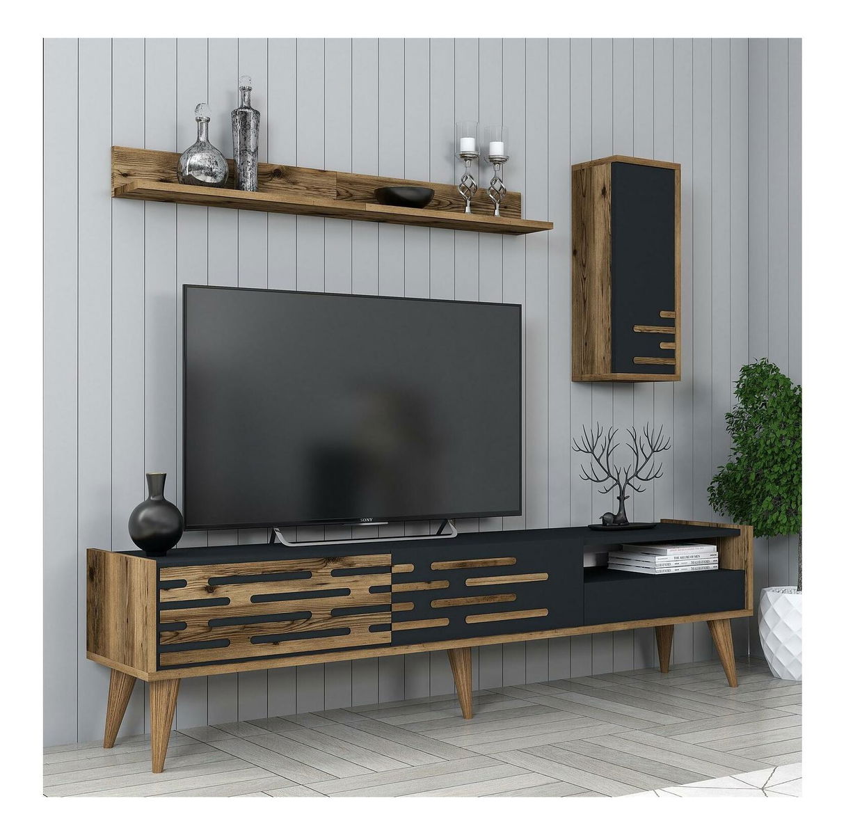 Obývací stěna Tonase (ořech + antracit)