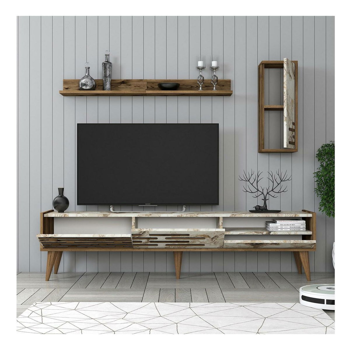 Obývací stěna Tonase (ořech + bílá + mramor)
