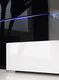 Zajímavá obývací stěna s nadčasovým designem, udělá z Vašeho obývacího pokoje moderní prostor. TV stolek má dvě zásuvky a nad ním se nachází nástavba se skleněnou poličkou, která je podsvícená. Efektní podsvícení májí i skleněné poličky ve skříňkách, které prosvítají ven i při zavřených dveřích.