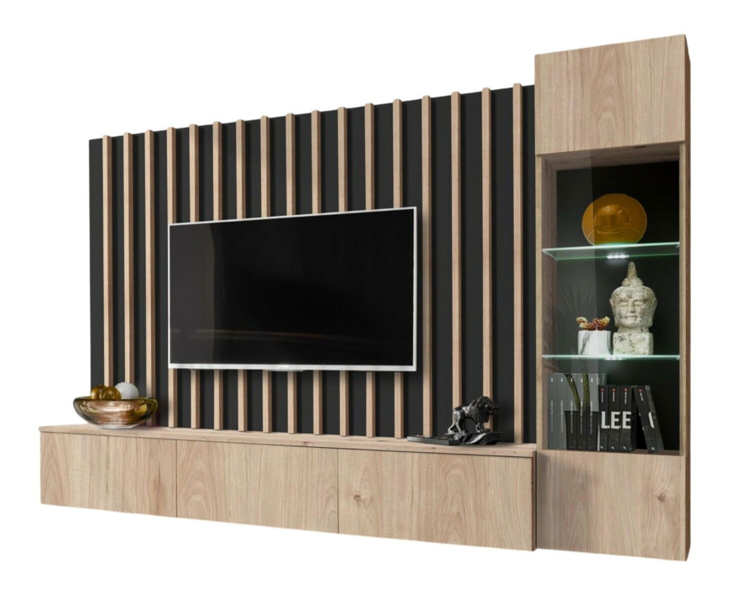 Obývací stěna Vertic (černá + hikora jackson) (s LED osvětlením)