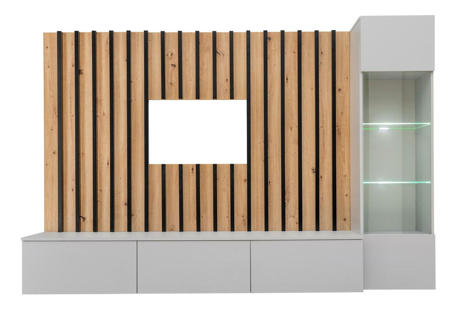 Obývací stěna Vertic (dub artisan + perla gray) (s LED osvětlením)