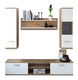 Moderní a praktická obývací stěna s jednodušším, ale všestranným designem, který se dá kombinovat s jinými prvky. Komponenty obývací stěny jsou: TV stolek, polička na stěnu, skříňka na stěnu a vitrína na stěnu. Komponenty jsou vyrobeny z fóliované dřevotřísky. Barevné provedení obývací stěny je dub wotan v kombinaci s bílou.