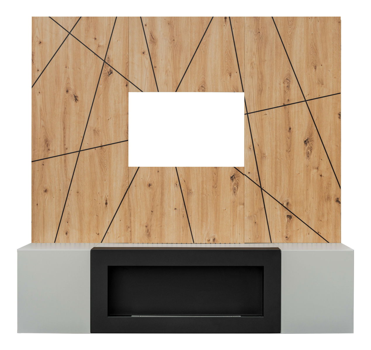Obývací stěna Xavus G2-K (perla grey + dub artisan) (s bio krbem)
