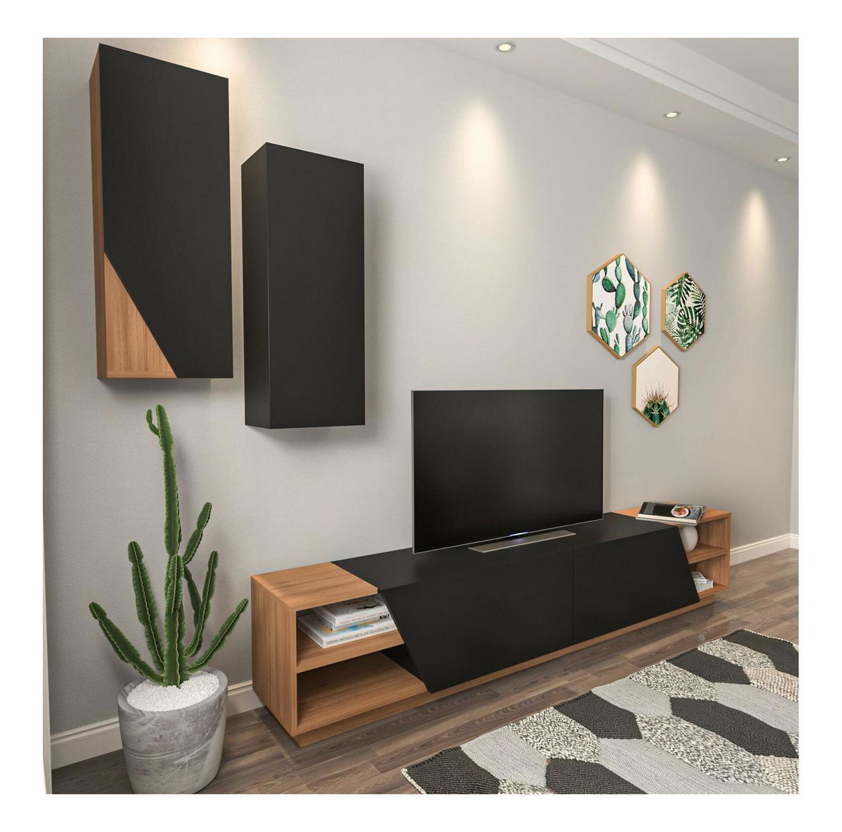 Obývací stěna Ziva 2 (černá + teak) *výprodej
