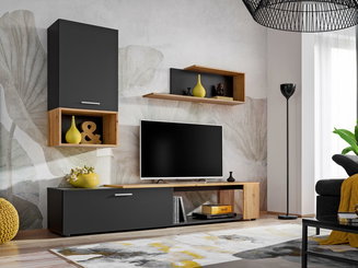 Obývací stěna Mantes ZWT30 (černá matná + dub wotan)